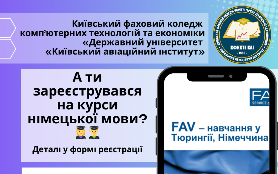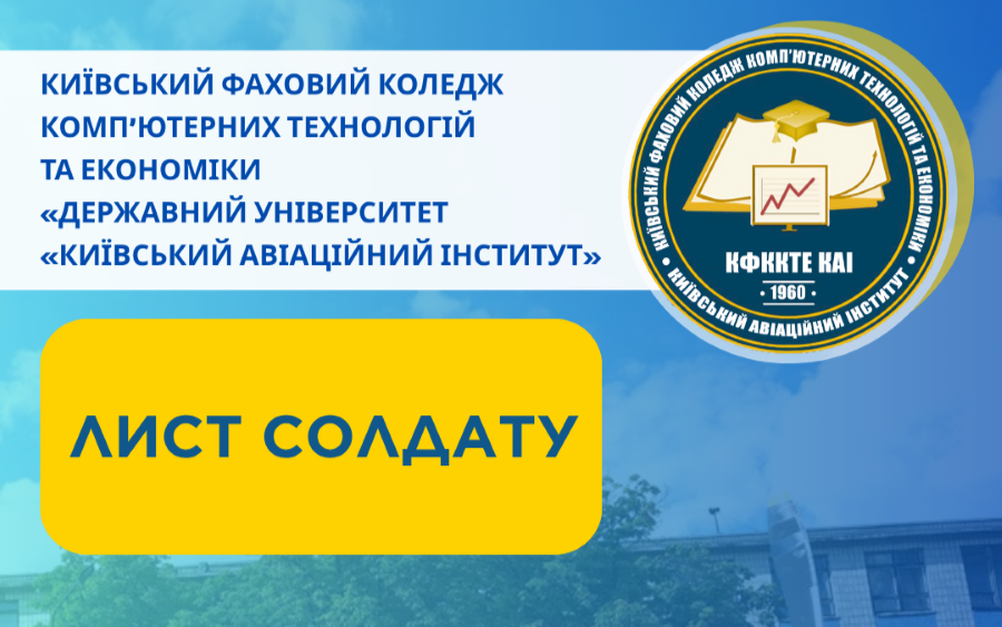 Шановні абітурієнти, запрошуємо Вас на навчання у ВСП "Київський фаховий коледж комп'ютерних технологій та економіки Національного авіаційного університету".