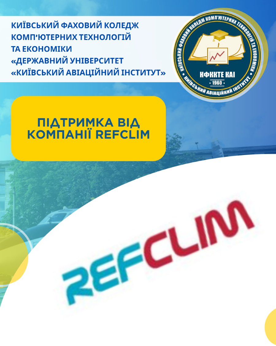 Коледж висловлює щиру подяку компанії REFCLIM за підтримку освітніх ініціатив і сприяння розвитку сучасної фахової освіти.