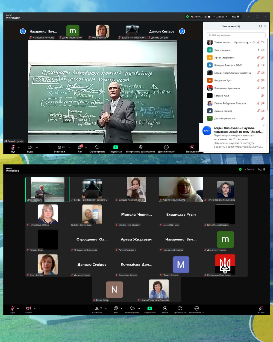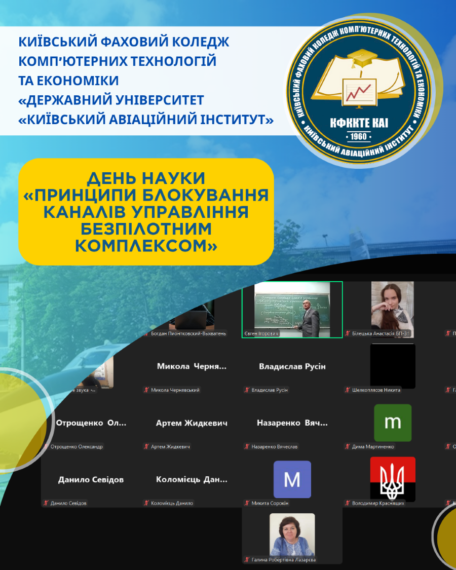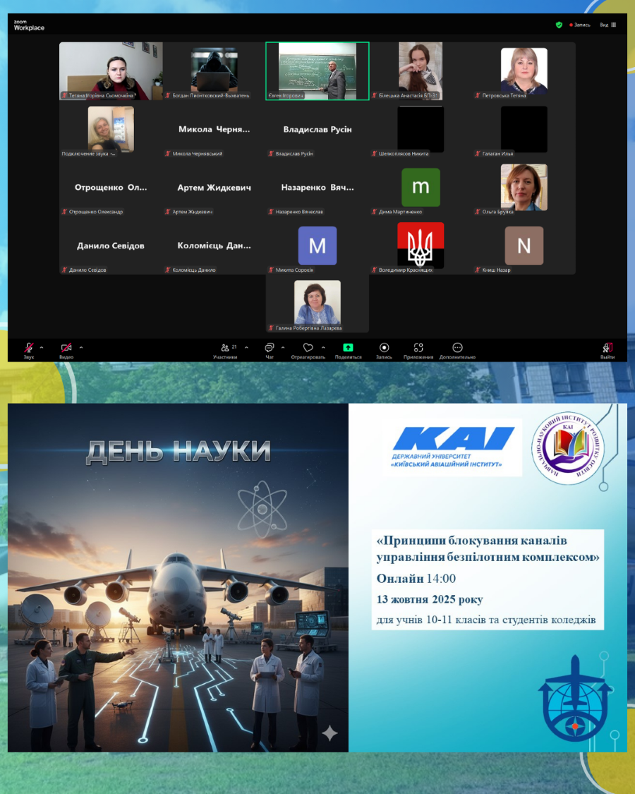 13 жовтня 2025 року відбулася науково-популярна лекція «Принципи блокування каналів управління безпілотним комплексом», організована Навчально-науковим інститутом розвитку освіти спільно з Факультетом аеронавігації, електроніки та телекомунікацій Державного університету «Київський авіаційний інститут».