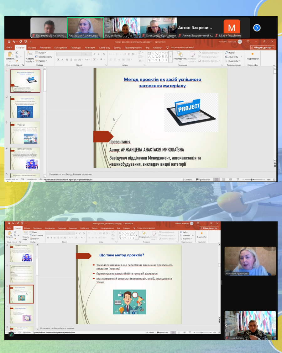 15 жовтня 2025року завідувачка відділення менеджменту, автоматизації та машинобудування Анастасія Аржанцева поділилася своїм досвідом у застосуванні методу проєктів як ефективного засобу успішного засвоєння навчального матеріалу.