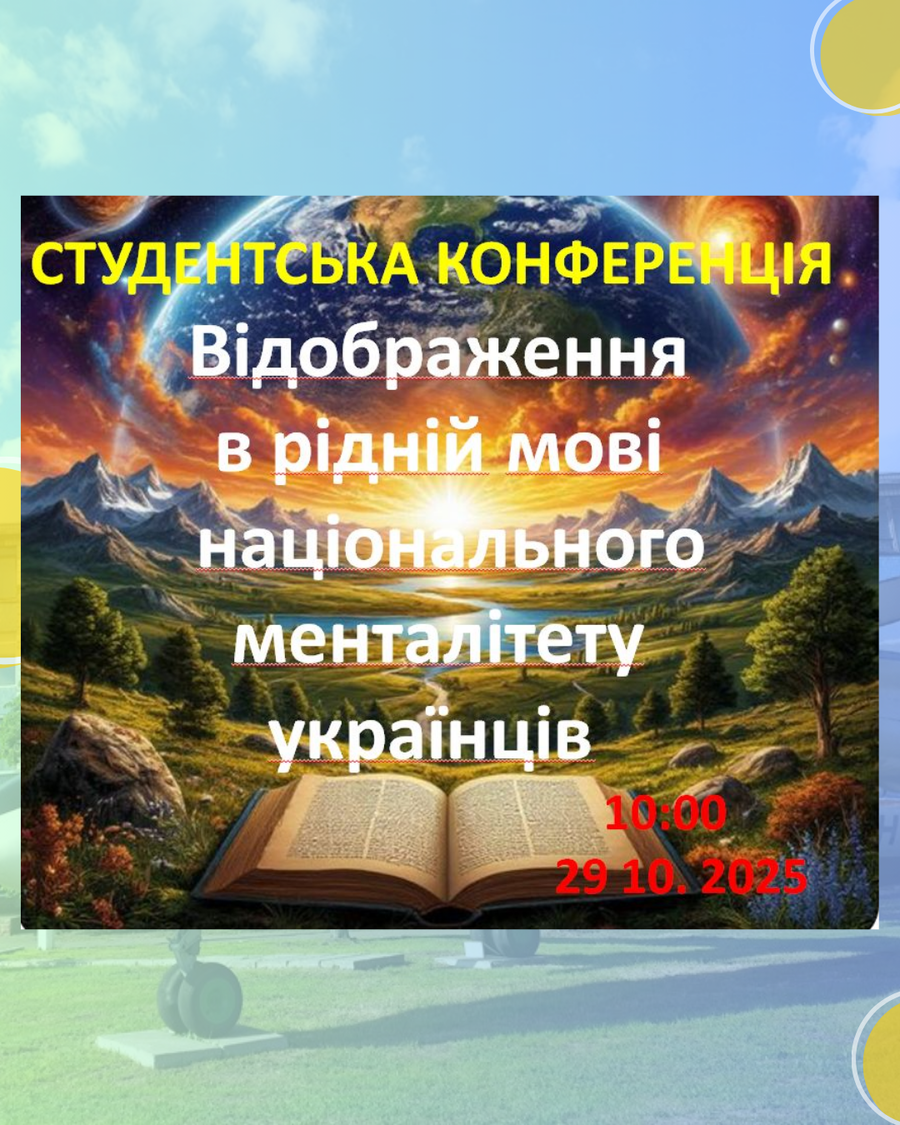 В рамках проведення тижня комісії філологічних дисциплін та до відзначення Дня української писемності та мови 29 жовтня 2025 року о 10:00 запрошуємо на студентську конференцію на тему: «Відображення в рідній мові національного менталітету українців»