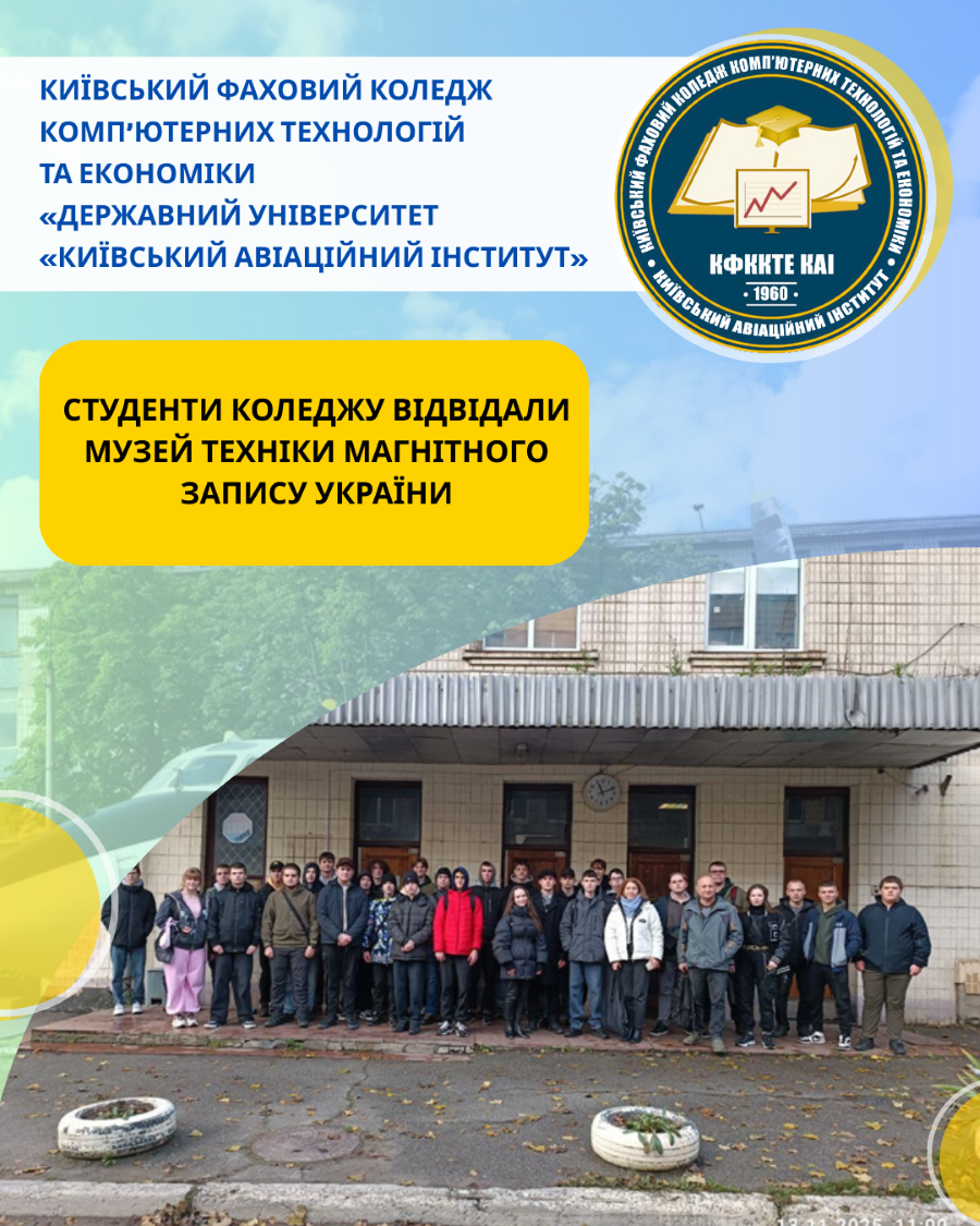 Адміністрація та педагогічний колектив щиро висловлюють подяку організаторам екскурсії до Музею техніки магнітного запису України. Завдяки вашій професійній роботі, змістовному супроводу та щирій зацікавленості у популяризації технічної спадщини, наші студенти отримали унікальну можливість доторкнутися до історії розвитку технологій магнітного запису та побачити рідкісні експонати, які є важливою частиною наукового й культурного надбання України. Екскурсія стала для студентів не лише пізнавальною, а й надихаючою, сприяла розширенню їх світогляду, формуванню професійних інтересів та розвитку поваги до вітчизняної технічної історії.