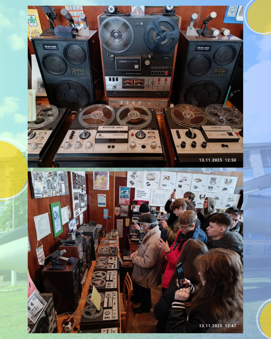 Крім того, студенти ознайомилися з еволюцією технологій звукового запису, починаючи від перших пристроїв до сучасних рішень. Вони побачили: рідкісні моделі магнітофонів та звукозаписувальної апаратури; принципи роботи аналогових та цифрових систем; вплив магнітного запису на розвиток радіо та телекомунікаційних систем.