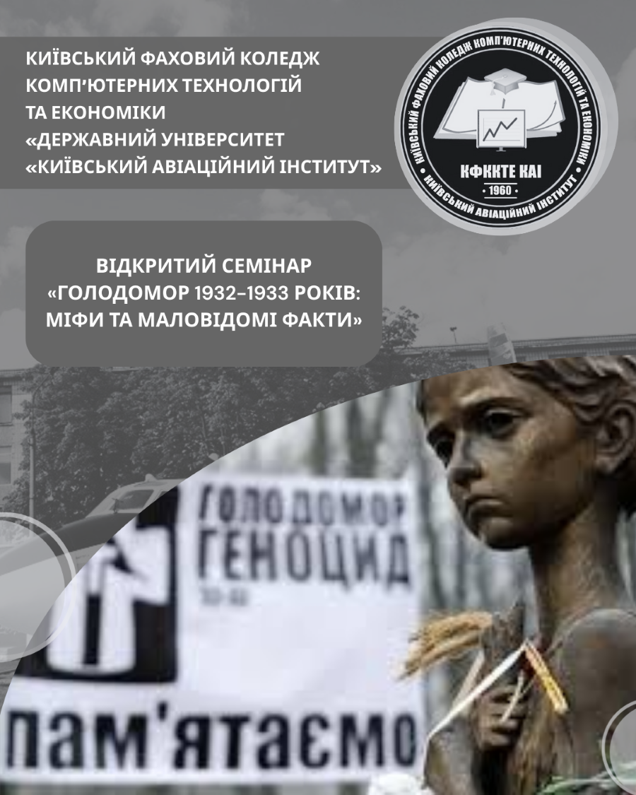 26 листопада 2025 року в рамках Тижня комісії суспільно-економічних дисциплін був проведений відкритий семінар «Голодомор 1932-1933 років: міфи та маловідомі факти». Учасниками заходу стали здобувачі освіти груп А-21, Ф-21, Р-21, БП-21, а також викладачі коледжу.
