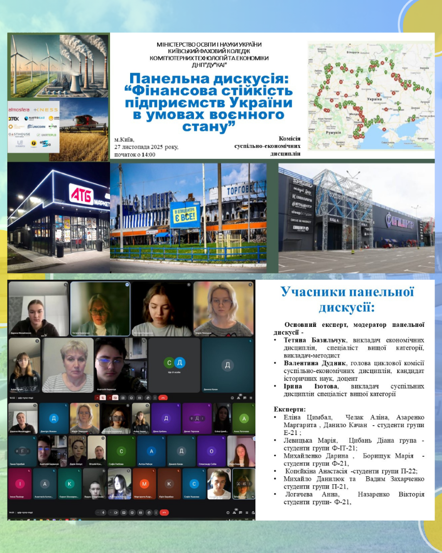 В рамках проведення Тижня комісії суспільно-економічних дисциплін, Базильчук Тетяна Григорівна, викладач економічних дисциплін організувала та провела панельну дискусію на тему: «Фінансова стійкість підприємств України в умовах воєнного стану».