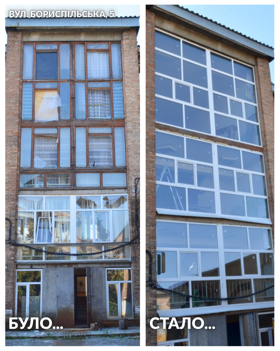За адресою вул. Бориспільська, 5 замінено 398 віконних конструкцій загальною площею 816,3906 м².
