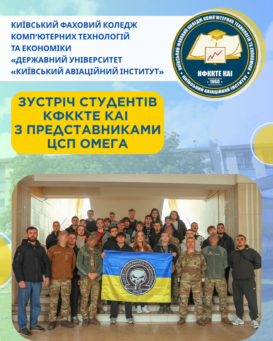 У Київському фаховому коледжі комп’ютерних технологій та економіки КАІ відбувся національно-патріотичний захід - зустріч студентів-випускників із представниками групи комплектування та бійцями Центру спеціального призначення «Омега».