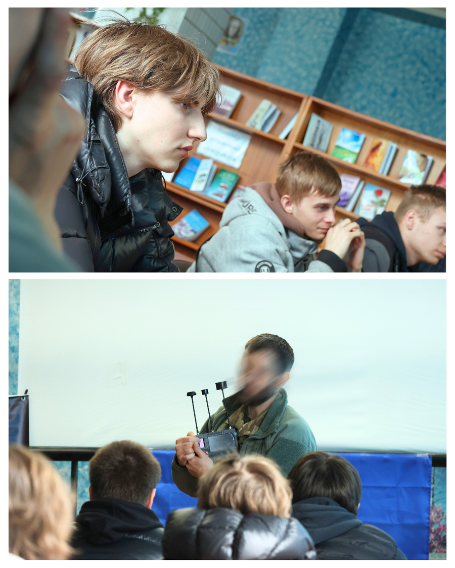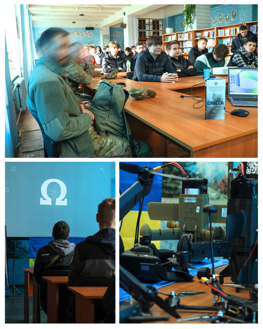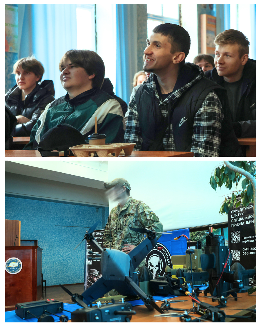 Молодь активно долучалася до діалогу, ставила запитання та цікавилася сучасними технологіями ведення бойових дій, зокрема застосуванням БпЛА та можливістю проходження базового курсу пілота FPV. Найактивніші учасники були відзначені шевронами ЦСП «Омега».