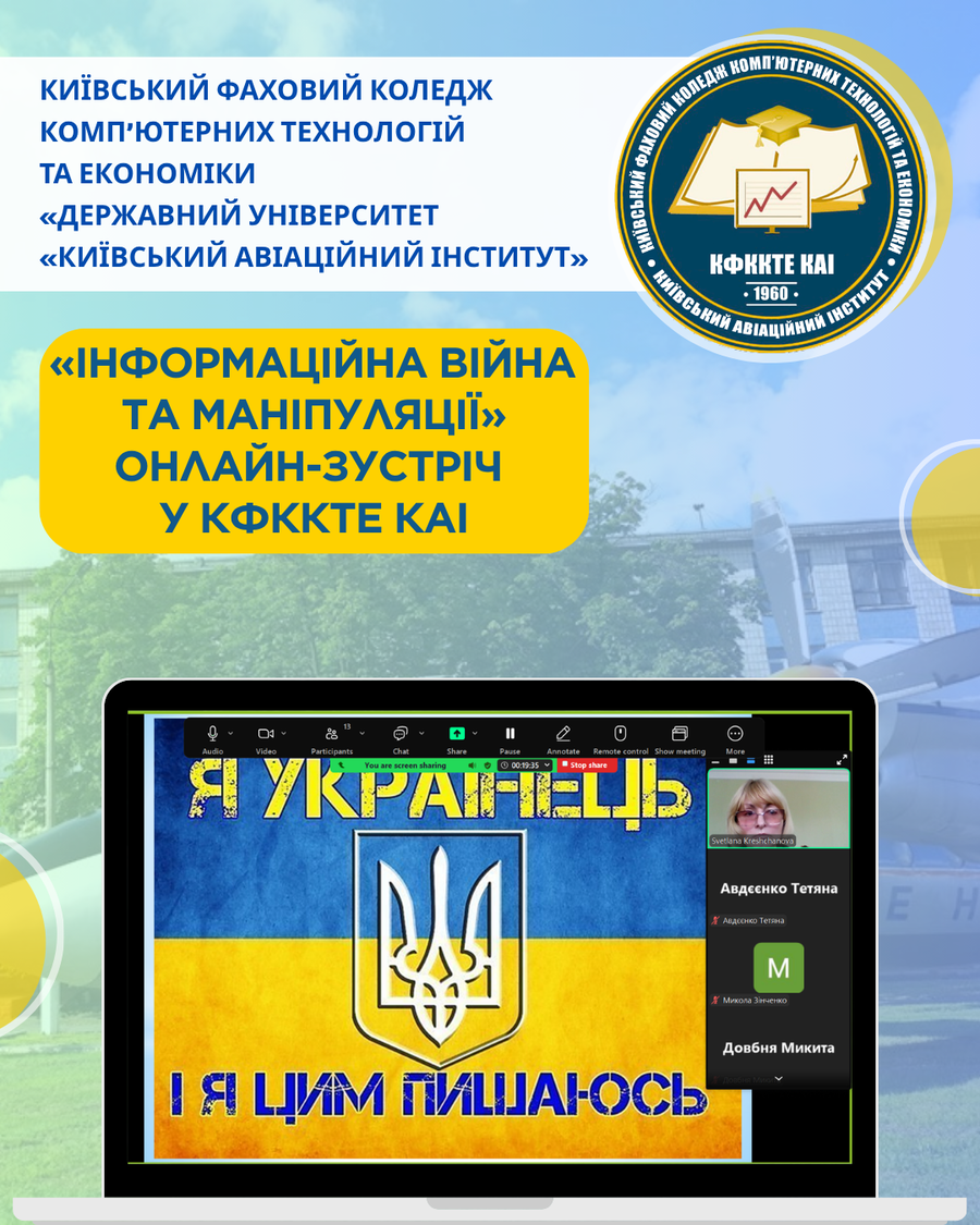 У Київському фаховому коледжі комп’ютерних технологій та економіки КАІ відбувся національно-патріотичний онлайн захід на тему «Інформаційна війна та маніпулювання», який пройшов у межах тижнів патріотичного виховання 💻