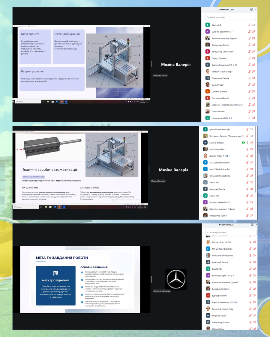 Валерія Мязіна представила свою роботу «Модернізація вузла керування роботи маніпулятора на основі електропневмопривода», яка спрямована на поліпшення точності та швидкодії роботизованих систем, що є критично важливим для автоматизованих виробничих ліній.