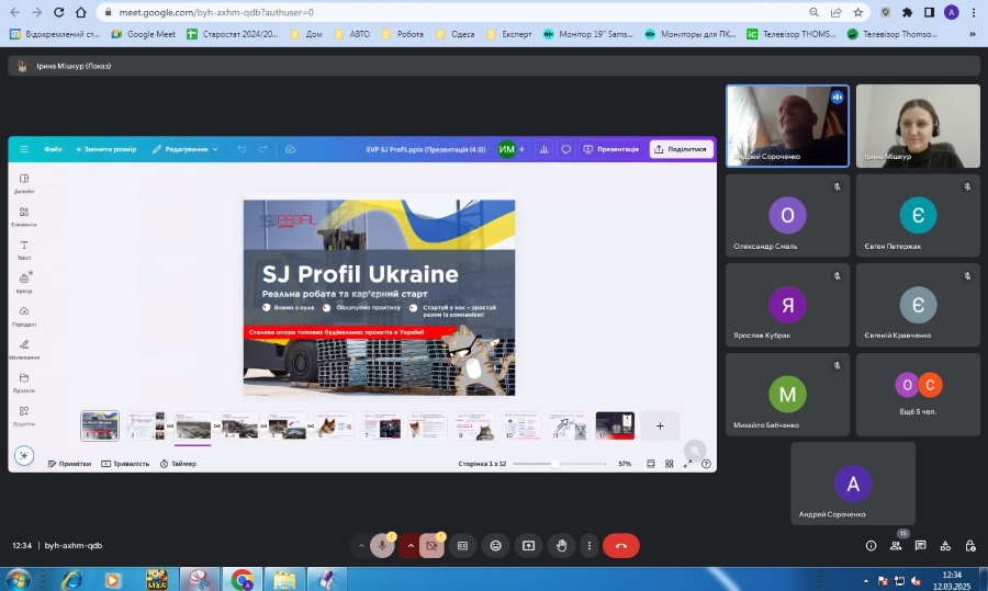 12 березня 2025 року головою ВЦК АРМ Андрієм Сороченком була організована онлайн-зустріч здобувачів освіти третього та четвертого курсу спеціальності 133 «Галузеве машинобудування» з представником компанії «SJ Profil Ukraine» Іриною Мішкур.