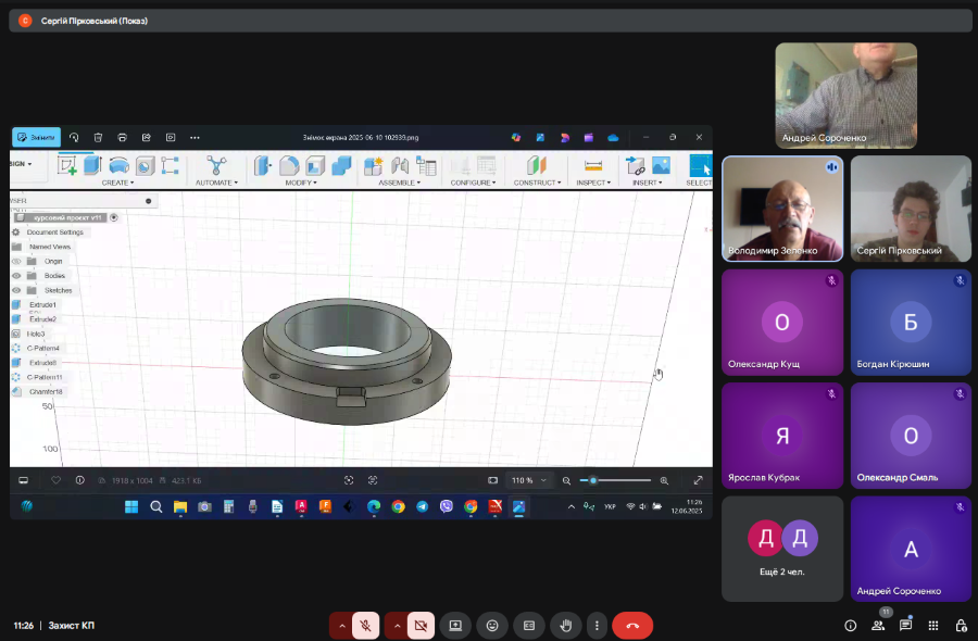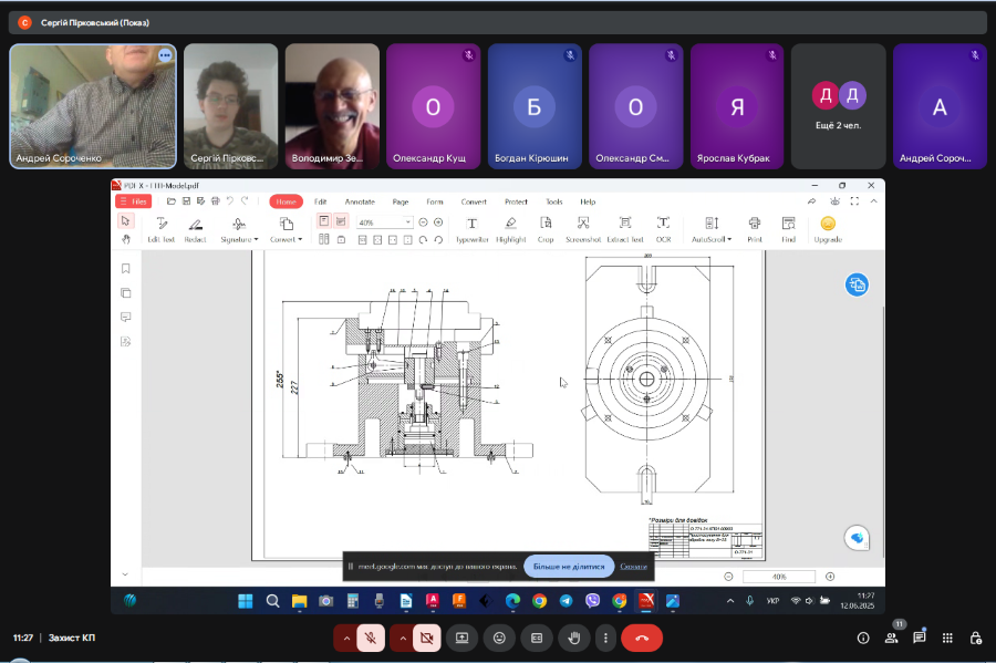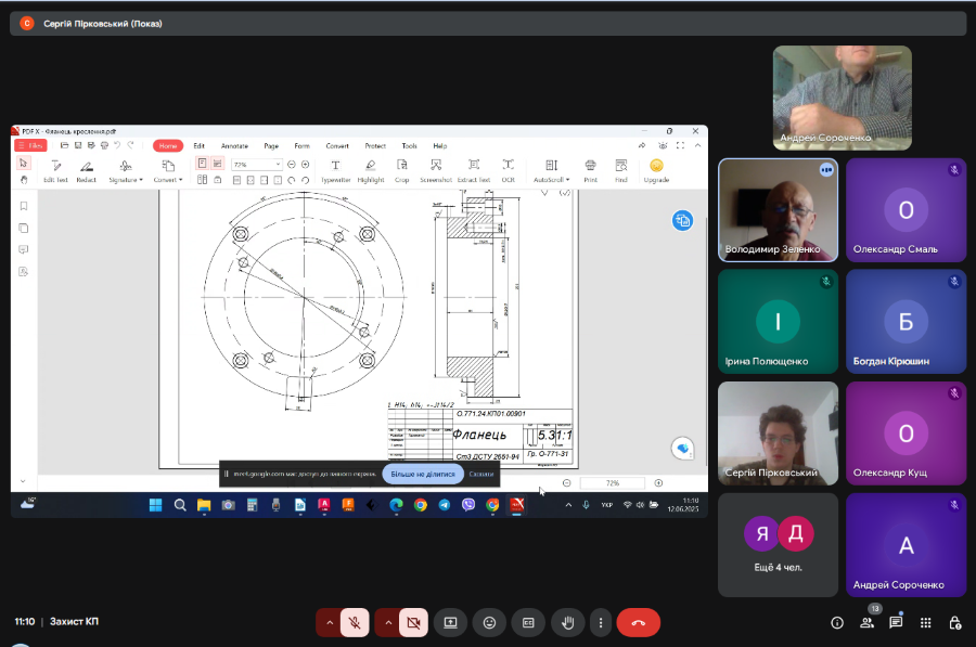 З 09 до 13 червня 2025р. на платформі Google meet з використанням дистанційних технологій відбувся онлайн-захист курсових проєктів з дисципліни «Технологічне оснащення» (спеціальність 133 «Галузеве машинобудування»). Курсовий проєкт з відповідної навчальної дисципліни є невід’ємною частиною підготовки фахівців даної спеціальності, передбачений навчальним планом та графіком освітнього процесу.