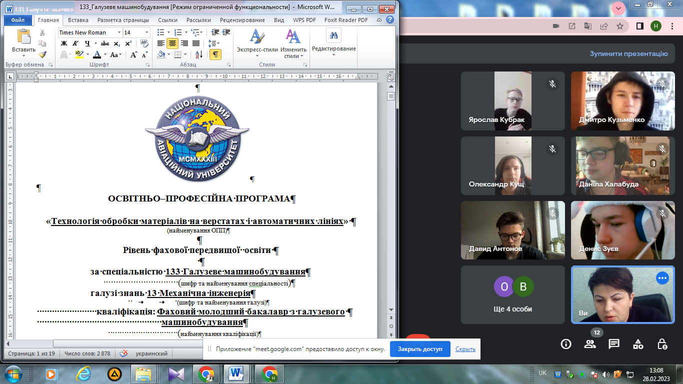 28.02.2023р. відбулася зустріч здобувачів освіти груп О-771-11, О-749-21, О-736-31 спеціальності 133 «Галузеве машинобудування» із керівниками груп Шевченко Н.Л., Малишевою Т.С. та Спис І.С. Присутні були ознайомлені зі структурою, змістом освітньо-професійної програми «Технологія обробки матеріалів на верстатах і автоматичних лініях» та із її освітніми компонентами. Особлива увага була приділена вибірковим дисциплінам: висвітлено їх перелік, розглянуто анотації та власне алгоритм обрання освітніх компонент цієї групи.