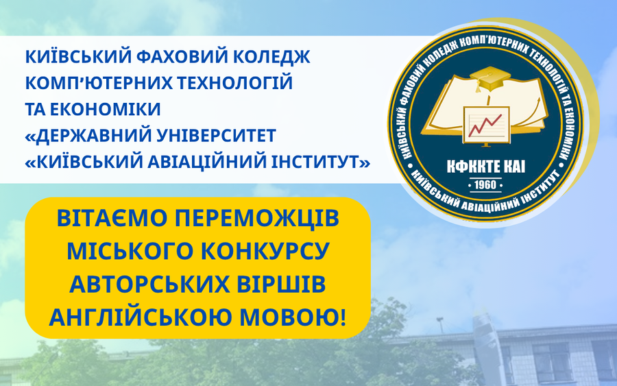 02 грудня 2020 року ММО викладачів іноземних мов м. Києва на базі ВСП Київський індустріальний коледж КНУБА провели конкурс власних віршів серед студентів закладів фахової передвищої освіти м. Києва.
