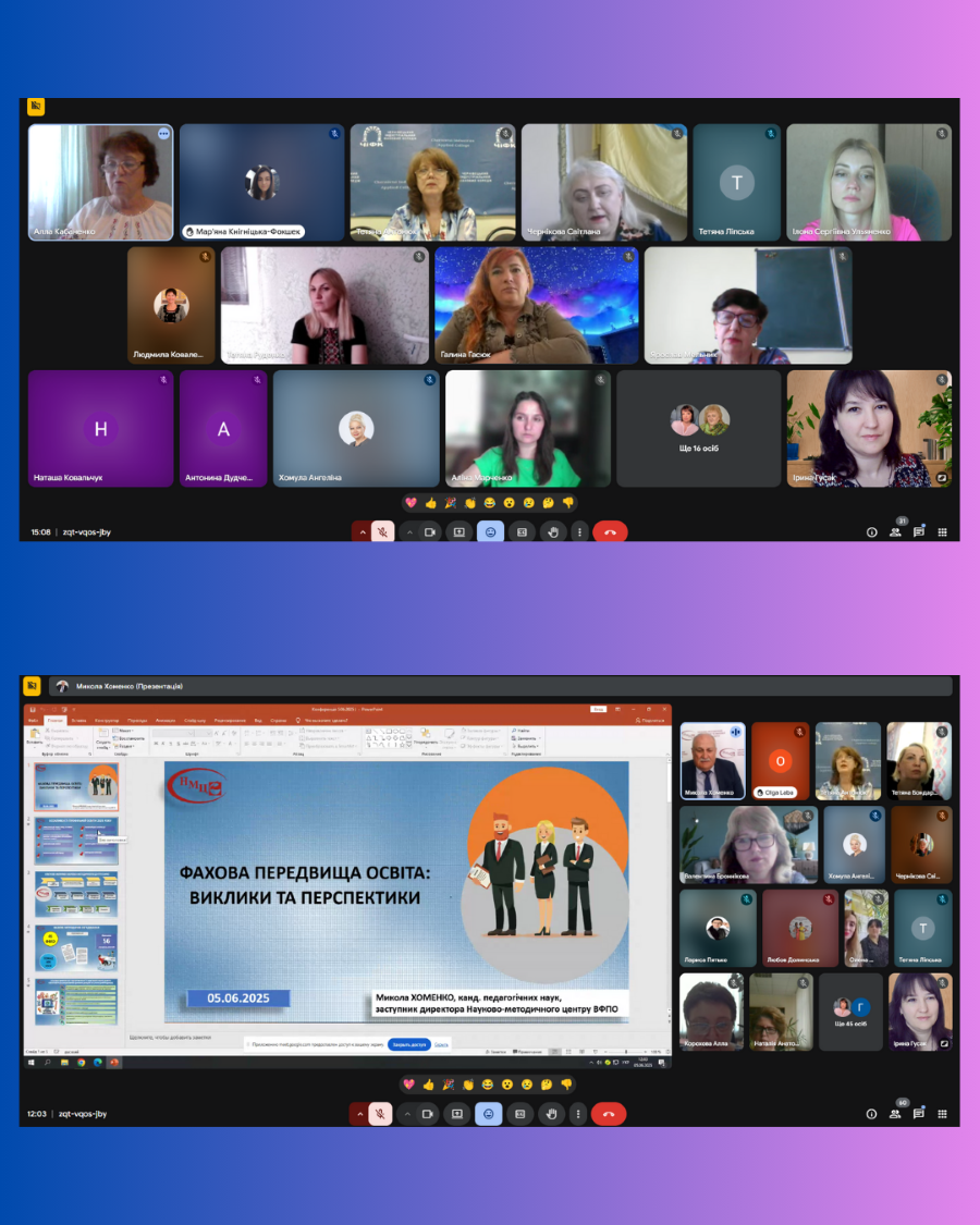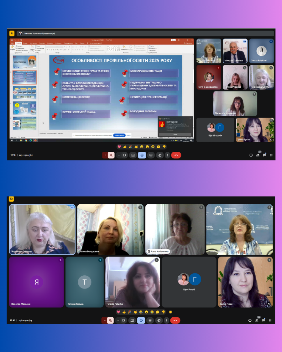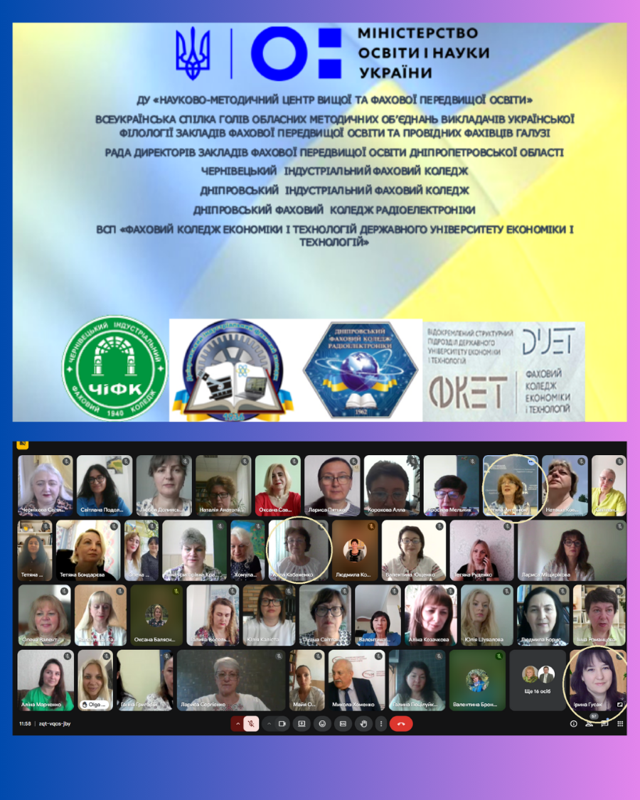 5 червня 2025 року за ініціативи Всеукраїнської спілки голів обласних методичних об’єднань викладачів української філології закладів фахової передвищої освіти та за підтримки Науково-методичного центру вищої та фахової передвищої освіти, Міністерства освіти і науки України відбулася Всеукраїнська нарада «Сучасні освітні інновації у викладанні дисциплін у закладах фахової передвищої освіти», учасниками якої стали викладачі нашого коледжу – Алла КАБАНЕНКО та Ірина ГУСАК.