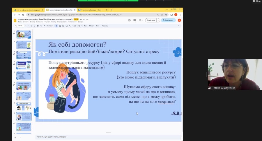 Відокремлений структурний підрозділ "Київський фаховий коледж комп`ютерних технологій та економіки Національного авіаційного університету"Сьогодні в сучасних умовах, коли сусідня держава своїми агресивними діями знищує наші міста і села, коли кожен відчуває загрозу життя, тривогу, роздратування, біль, відчай і втому, питання збереження свого психічного здоров’я стоїть гостро. До всесвітнього дня ментального здоров’я у ВСП «Київський фаховий коледж комп’ютерних технологій та економіки НАУ» відбулись тренінги «Як ти»? в групах Е-757-21 та в П-764-24. На них здобувачі освіти познайомились із поняттям «ментальне здоров’я», склали карту здорового способу життя, визначили тривожні маркери, що вказують на загрозу психічному здоров’ю, розвинули свій емоційний інтелект, вивчили вправи на саморегуляцію, елементи майндфулнесу, з допомогою арт-терапевтичних вправ визначили свій ресурс.