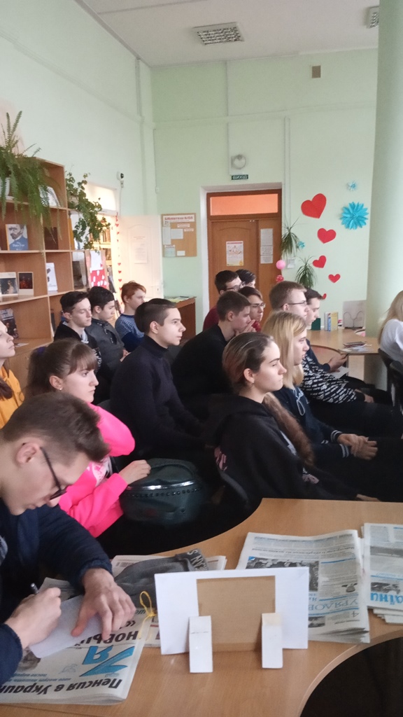 14 лютого 2020 року викладачі англійської мови Мизрова А.М. та Миронець Д.К. разом з завідуючою бібліотеки № 159 Централізованої бібліотечної системи Дарницького району провели практичне заняття присвячене Святу закоханих в групах А-11 та Ф-11. Студенти насолоджувалися теплим спілкуванням, ділились позитивом та енергією. Гарний настрій, позитивні емоції, веселий сміх зробили захід надзвичайно емоційним, життєрадісним і святковим.