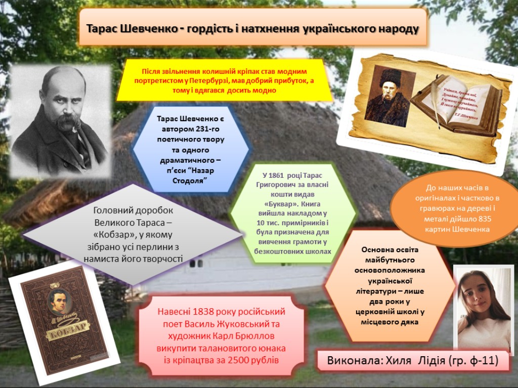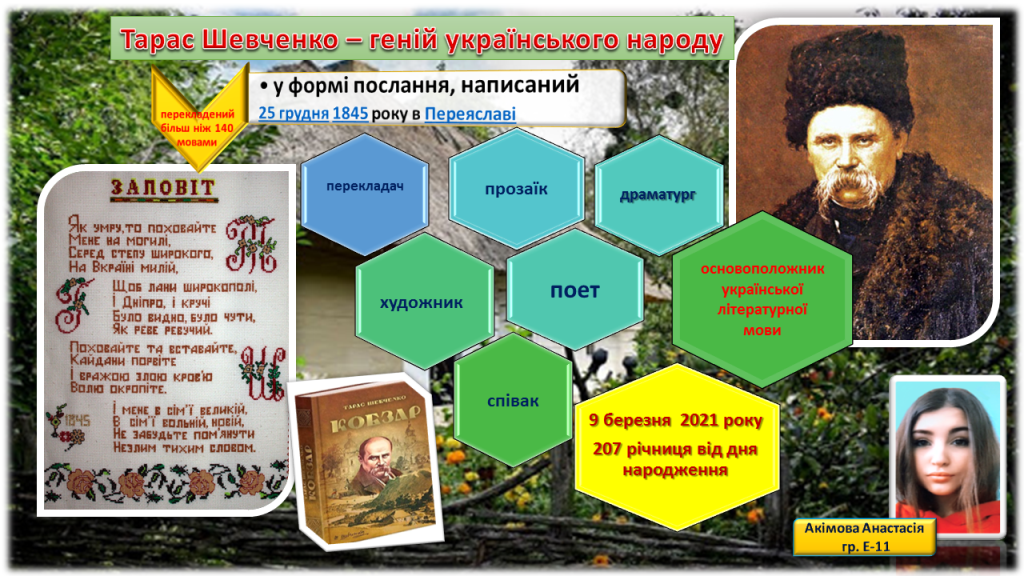 Студенти груп Ф-11 та Е-11 розробили листівки-презентації «Тарас Шевченко- геній українського народу» (Викладач: Гусак Ірина Віталіївна)