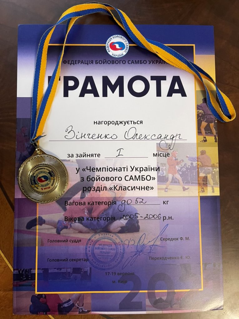 Відокремлений структурний підрозділ "Київський фаховий коледж комп`ютерних технологій та економіки Національного авіаційного університету"Вітаємо студента відділення КОМП'ЮТЕРНОЇ ІНЖЕНЕРІЇ ( група К-745-11) ЗІНЧЕНКА ОЛЕКСАНДРА ОЛЕКСАНДРОВИЧА, який посів 1 місце і ЗДОБУВ ПЕРЕМОГУ у ЧЕМПІОНАТІ УКРАЇНИ З БОЙОВОГО САМБО розділ "Класичне"( вагова категорія до 52 кг). Змагання проходили 17-19 вересня 2021 року у Легкоатлетичному манежі КМШВСМ, просп. П.Тичини 18.