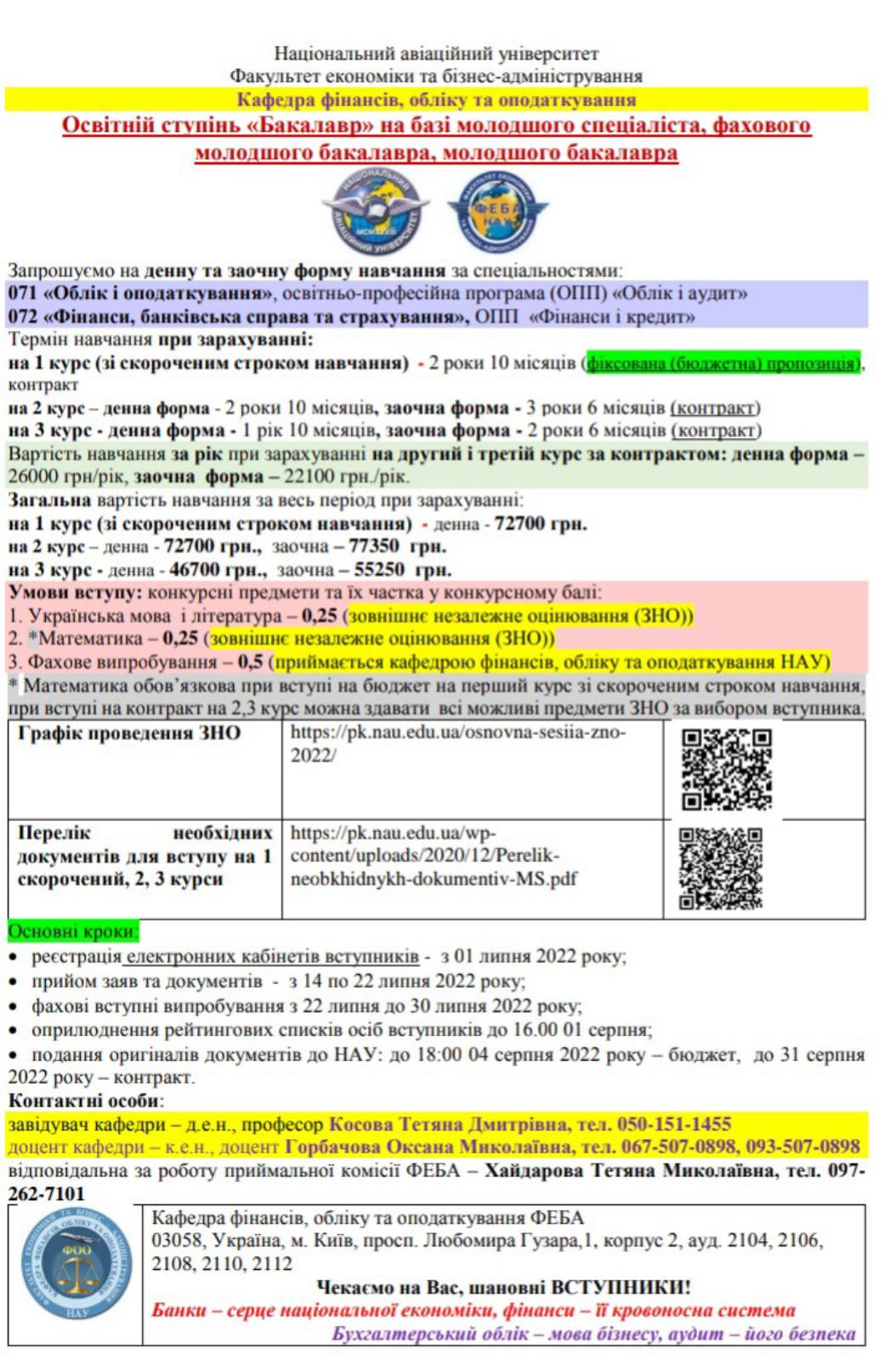 Відокремлений структурний підрозділ "Київський фаховий коледж комп`ютерних технологій та економіки Національного авіаційного університету"Інформація про освітній ступінь "Бакалавр" на базі кафедри фінансів, обліку та оподаткування у Національному авіаційному університеті.